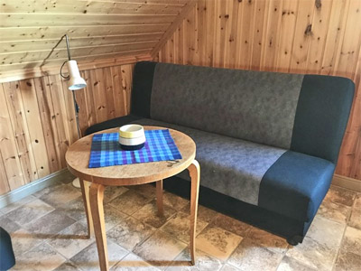 Övervåningen har ett sovrum med 4 bäddarr och möjlighet att komplettera med tillfälliga bäddar.