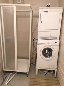finns badrum med dusch, tvättmaskin, torktumlare